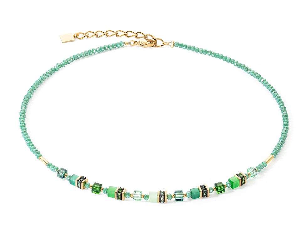 Coeur de Lion Collier 4357101506 Damencollier Handmade in Germany, farbenfrohes Collier aus poliertem vergoldetem Edelstahl, facettierte türkisblaue Beads - Swarowski® Kristalle, Glas geschliffen, Edelstahl vergoldet, Länge ca. 42 cm + 5 cm/ incl. Coeur de Lion Verpackung