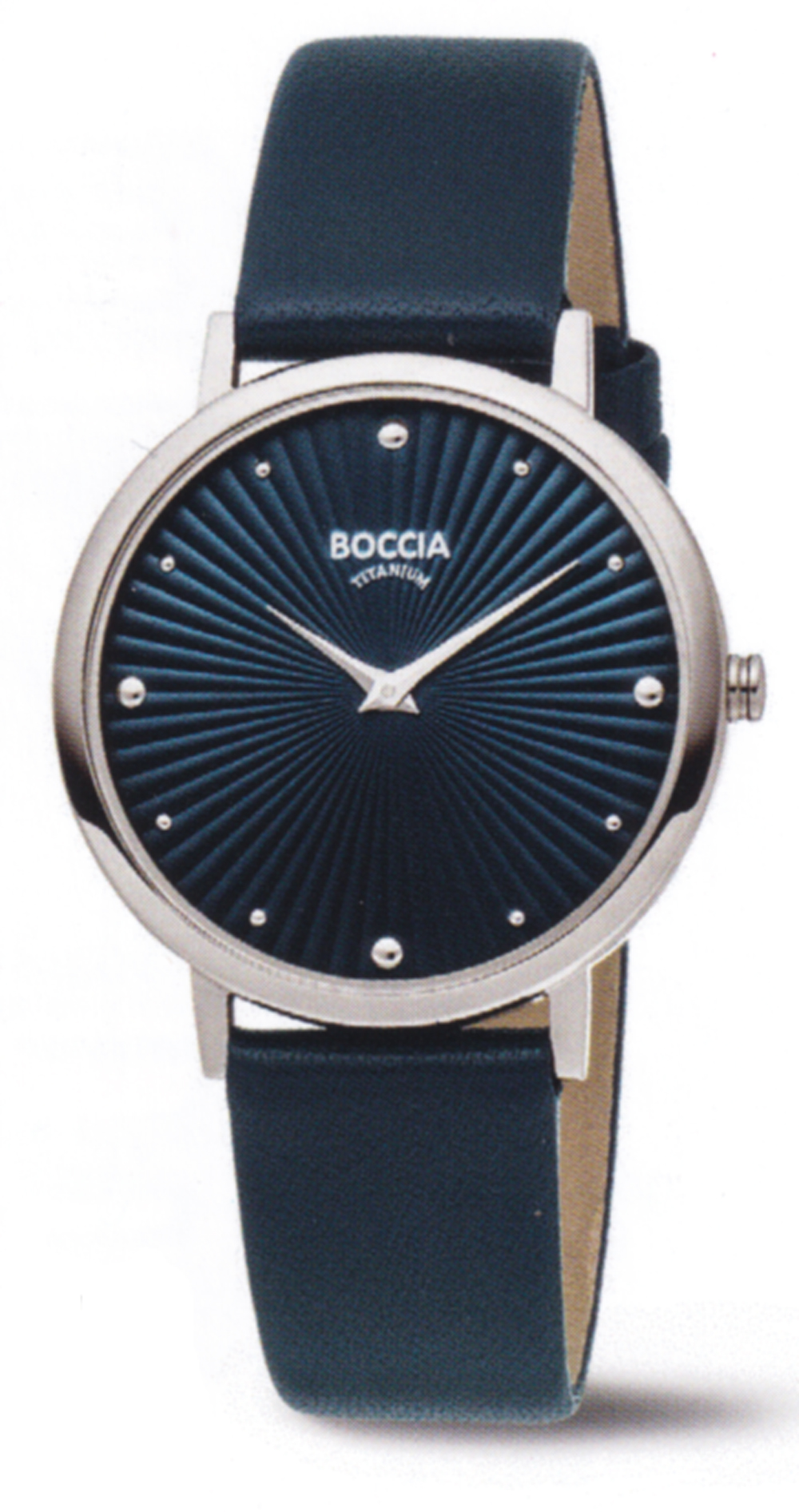 Boccia Damenuhr 3298-01ReintitanSaphirglasDatum5 barLederbandØ 29 mmAlle Titanbestandteile der Boccia Titanium Kollektion sind aus Reintitan gefertigt. Es ist leicht, von hoher Festigkeit und absolut hautverträglich.Titan ist ein ideales Material für Schmuck und Uhren. Die hautfreundlichen und antiallergischen Eigenschaften machen Schmuck und Uhren aus Titan gerade für Menschen mit Hautproblemen interessant. Titan ist ein sehr leichtes Material, was den Tragekomfort erhöht. Boccia verwendet aus diesem Grund nur Reintitan, keine Legierungen.