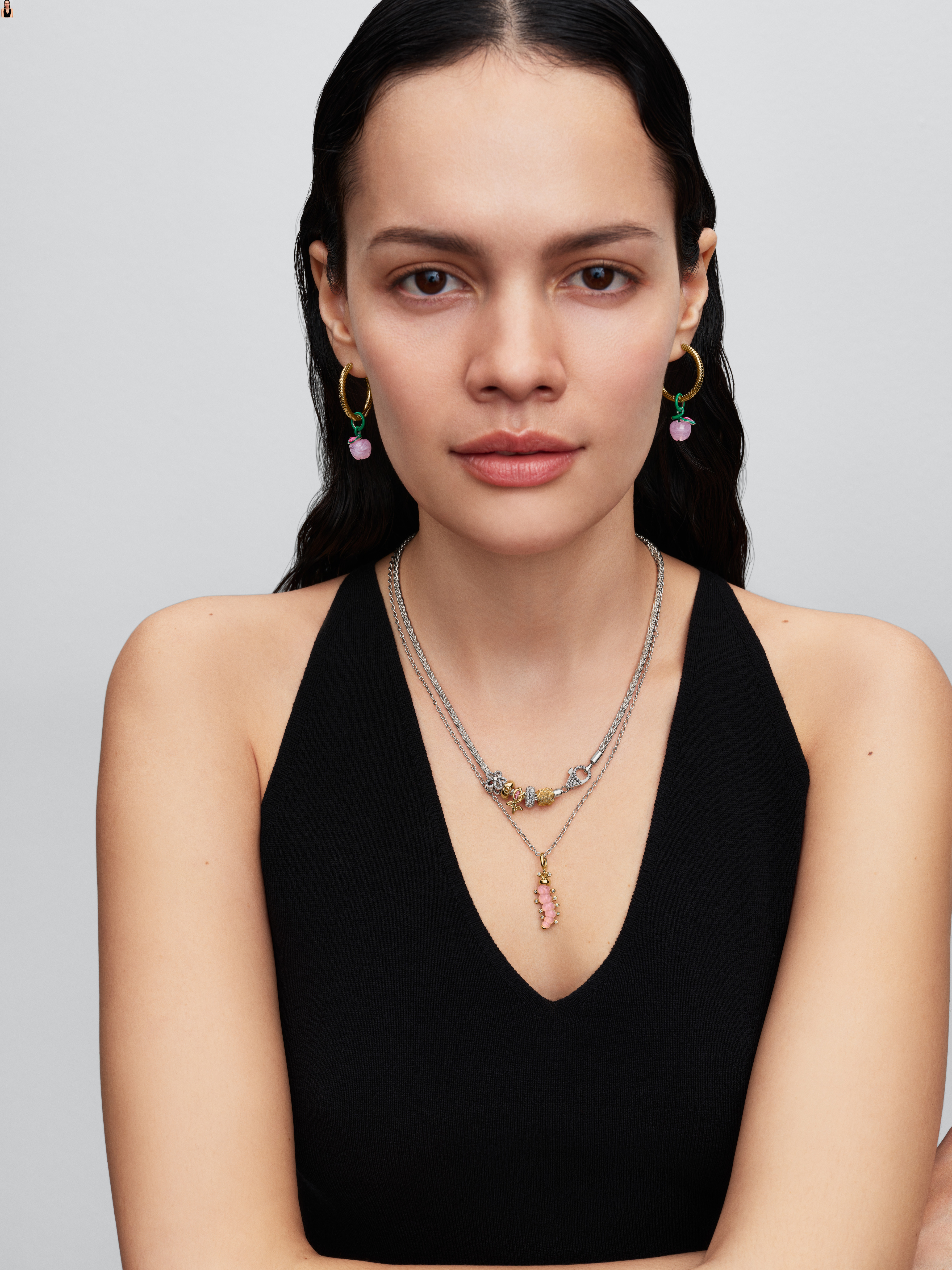 Pandora Clip-Charm 791817MCZ, Sterlingsilber, Silikoneinlage zum Fixieren auf dem Armband ( nicht geeignet um auf das Gewinde zu Clippen)grüne Steine