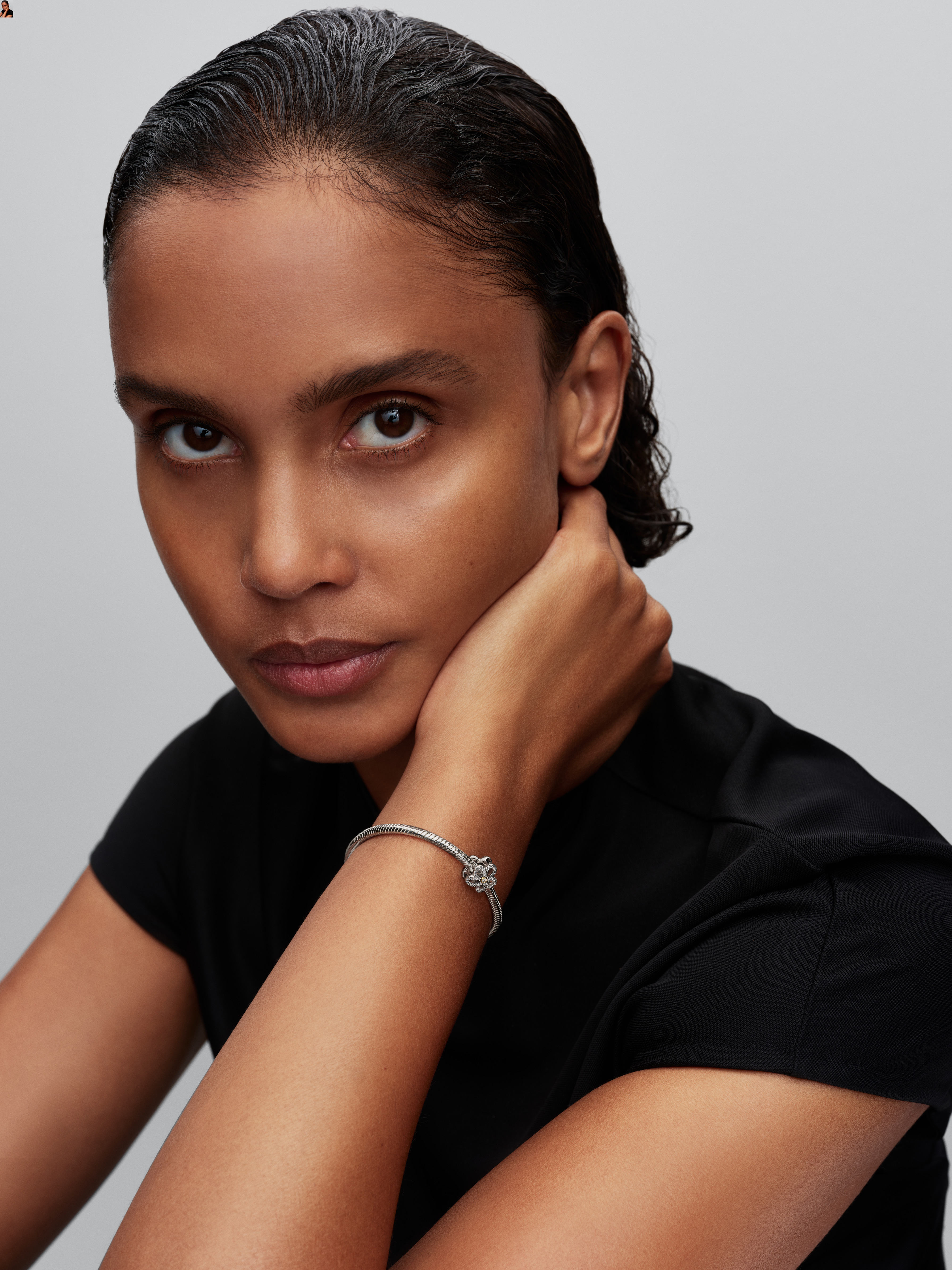 Pandora Clip-Charm 791817CZ, Sterlingsilber, Silikoneinlage zum Fixieren auf dem Armband ( nicht geeignet um auf das Gewinde zu Clippen)weiße Steine