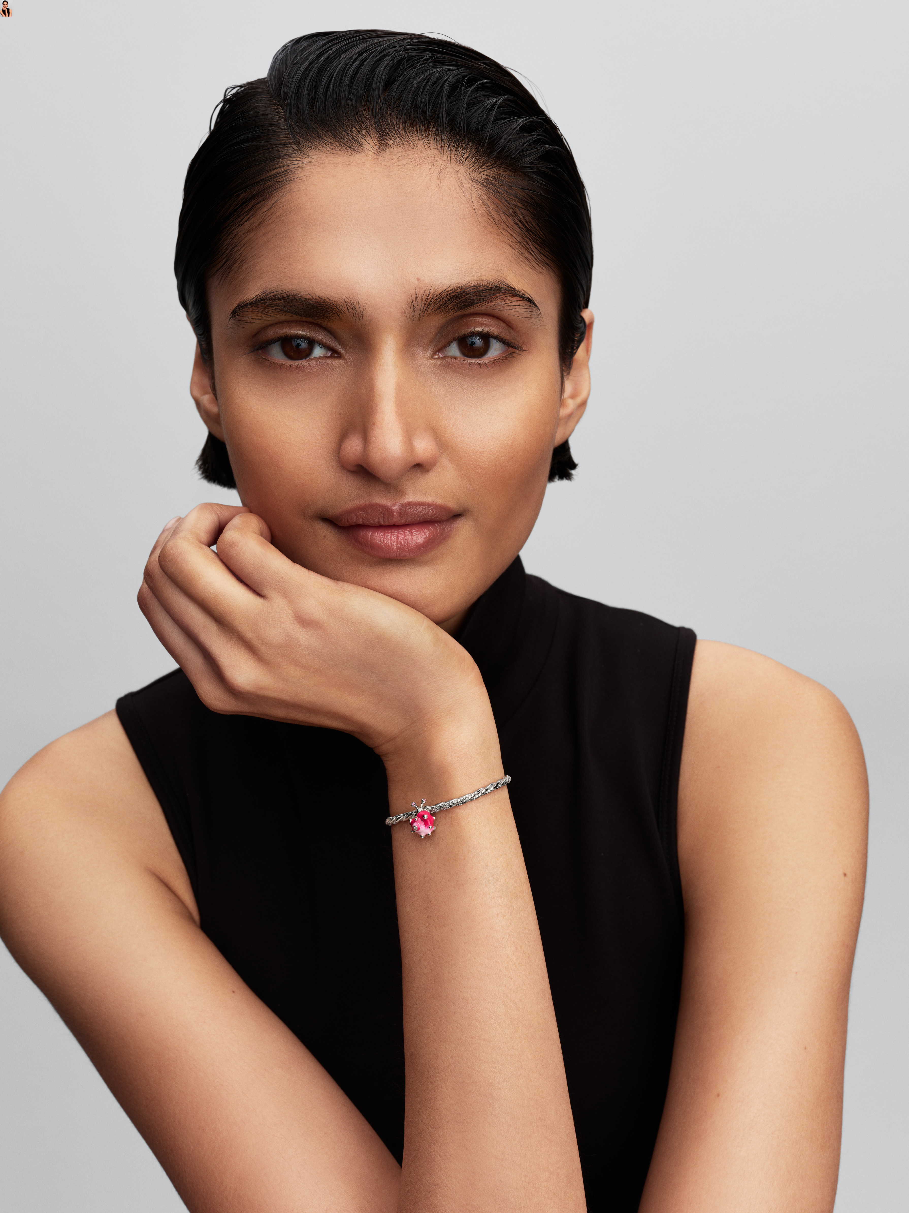 Sterlingsilber, rosafarbenes Emaille, rosafarbene synthetische Zirkonia