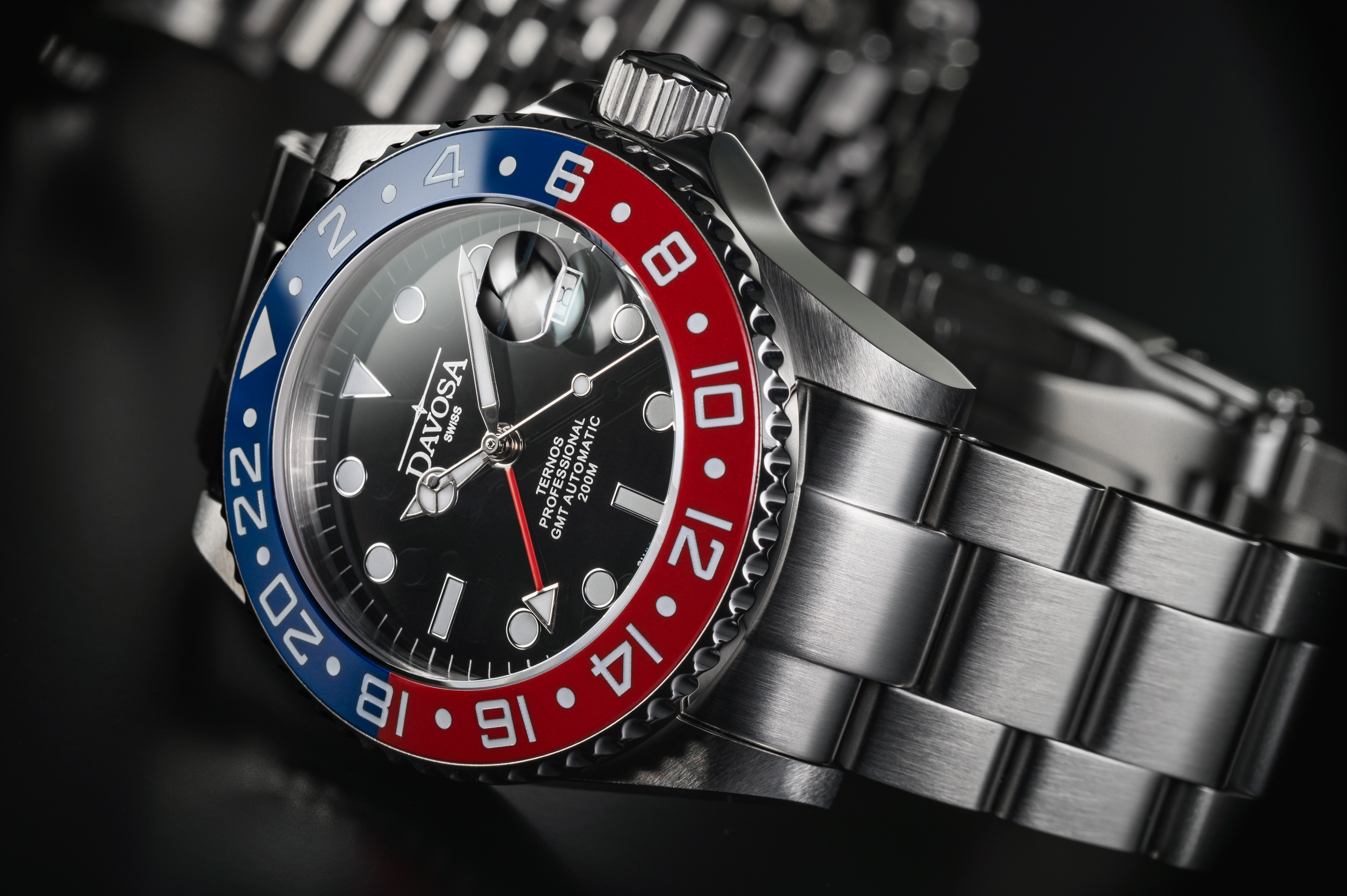 Die Möglichkeit, neben der aktuellen Uhrzeit eine zweite Zeitzone anzuzeigen, auch GMT-Funktion genannt, hat sich in den letzten Jahren zu einer der beliebtesten Zusatzfunktionen mechanischer Armbanduhren entwickelt. Für Davosa war es deshalb naheliegend, die erfolgreiche Serie Ternos Professional mit dieser Anzeige auszustatten.